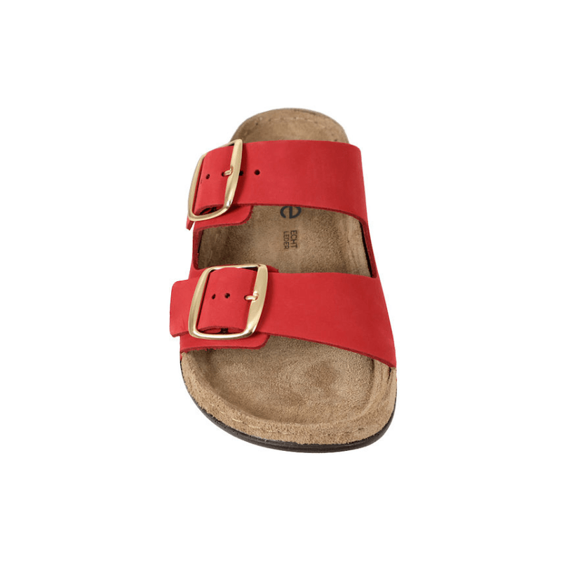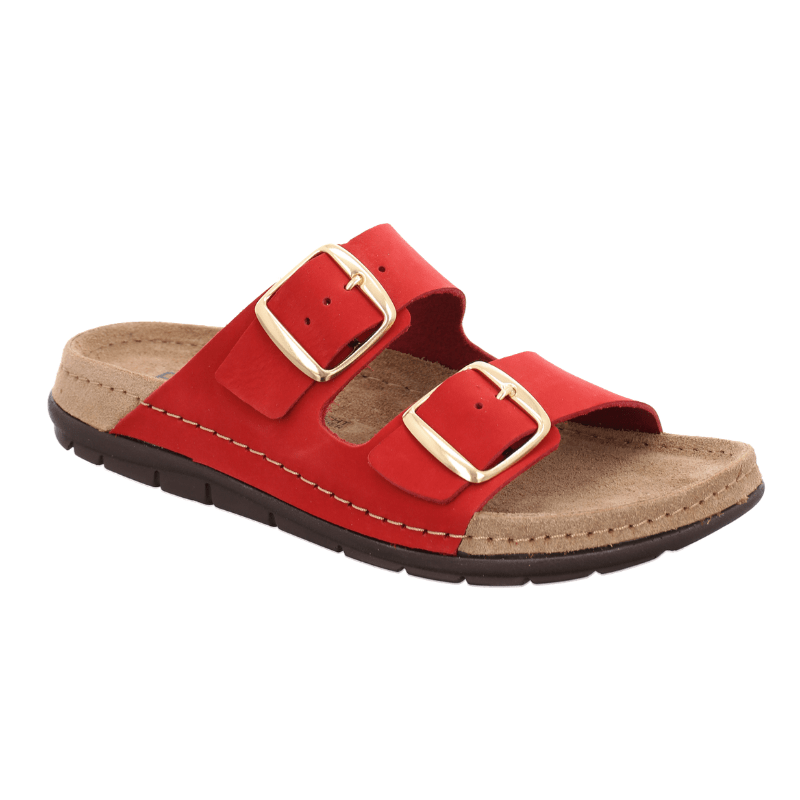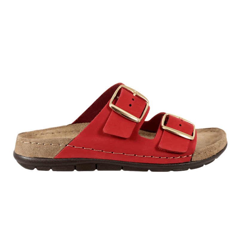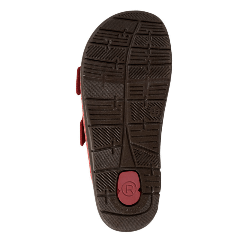 Elegant damesandal i rød nubuck fra Rohde med justerbare remme, der sikrer en individuel pasform.