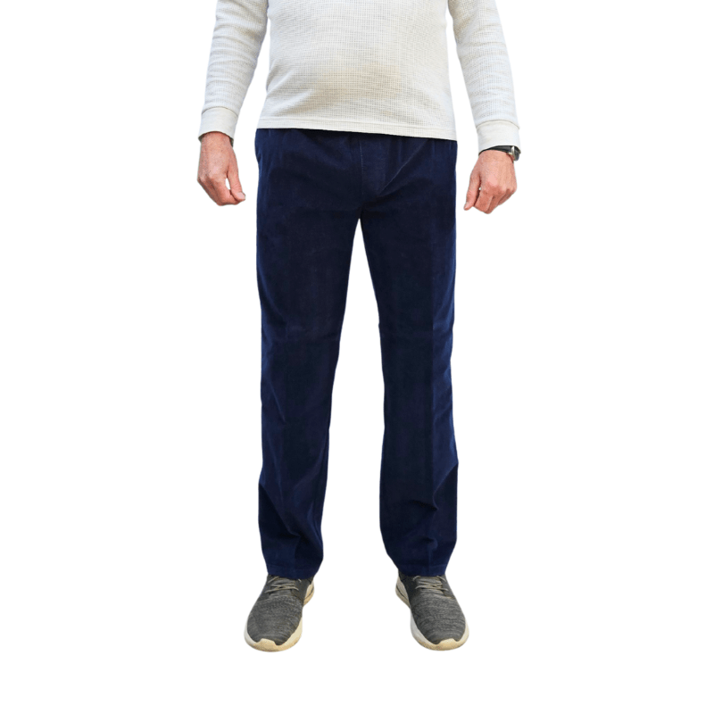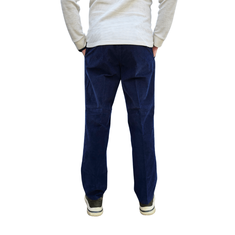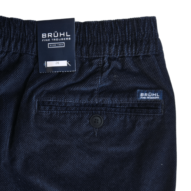 Eksklusive mørkeblå bukser med lidt struktur fra Brühl, fremstillet i blød Giza-bomuld – også kendt som egyptisk bomuld. Det er en luksuskvalitet, der kendetegnes ved sine ekstra lange fibre, som giver stoffet en glat og holdbar struktur, samtidig med at det føles usædvanligt blødt mod huden.