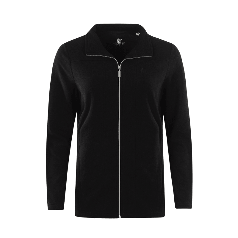 Lækker langærmet cardigan med lynlås og en lille krave i et feminint snit fra det anerkendte tyske kvalitetsmærke Hajo. Cardiganen er fremstillet i en luksuriøs microfleece, som er kendetegnet ved at være utrolig let og blød mod huden, samtidig med at materialet har en fremragende isoleringsevne. Den er perfekt som en lun trøje indendørs eller som en let jakke.
