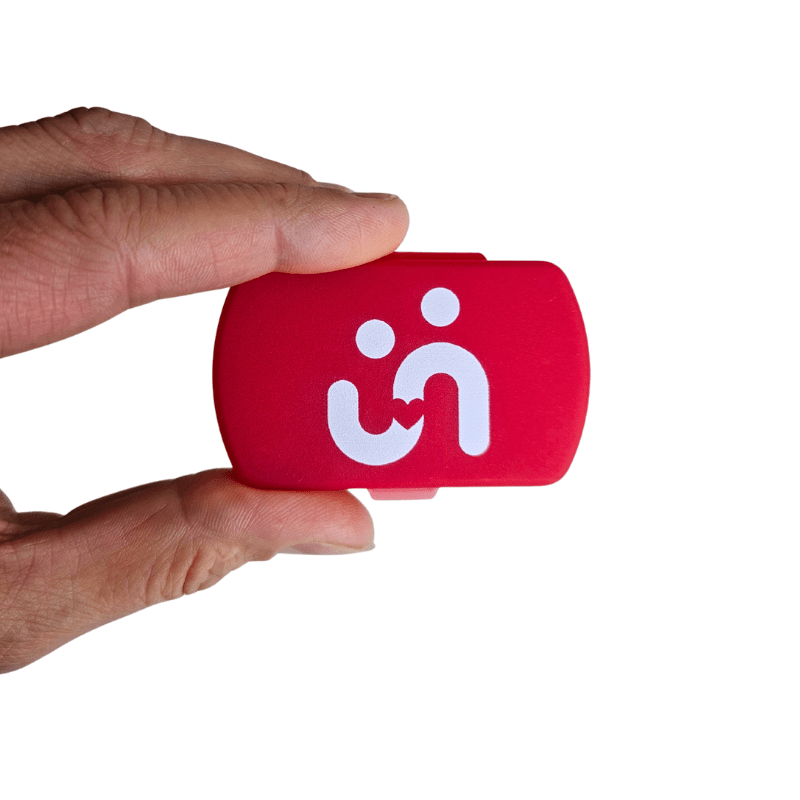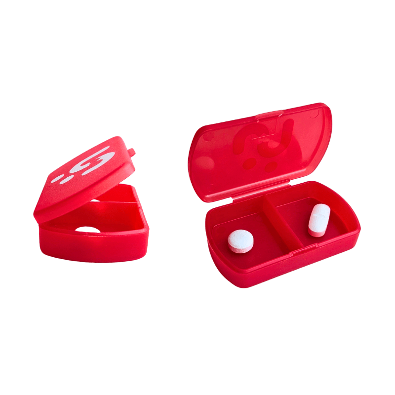 Denne praktiske pilleæske med to adskilte rum i en frisk rød farve er både funktionel og kompakt. Med en størrelse på på 6 x 4 cm passer den nemt i lommen, håndtasken eller toilettasken – ideel til hverdagsbrug eller på rejser.