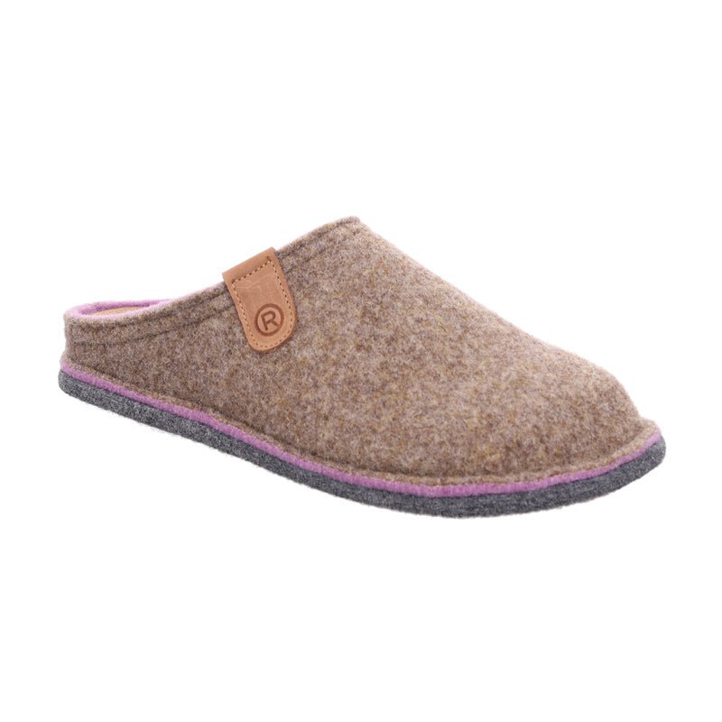 Lun og behagelig "no noise" damehjemmesko fra Rohde i flot beige nuance. Hjemmeskoen er lavet i blødt, åndbart filt, der føles rart mod foden og hjælper med at holde en jævn temperatur. Den udtagelige indersål er belagt med ruskind, som gør den både blød og slidstærk.