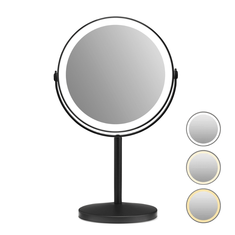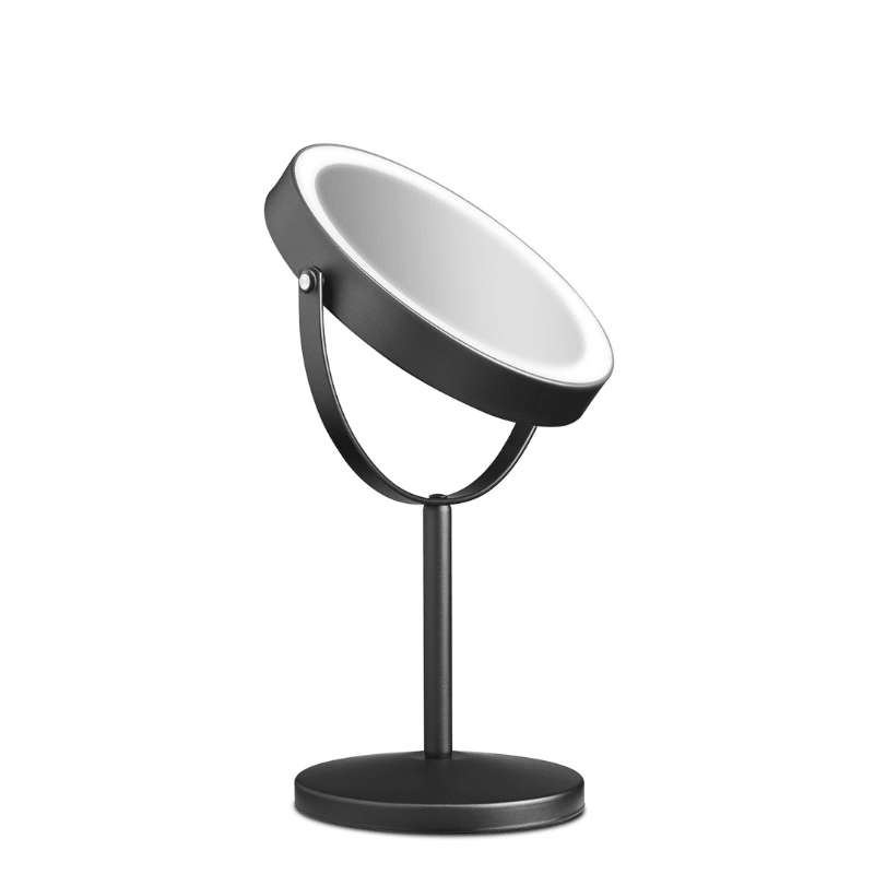 Ladattava LED-pöytäpeili, jossa on voimakas, integroitu LED-valo, jonka voi säätää kolmeen eri valonsävyyn: lämmin, neutraali ja kylmä. Sivulla olevan huomaamattoman kosketusnäppäimen avulla voit helposti hallita päälle/pois kytkemistä, valita valon sävyn ja säätää kirkkautta sisäänrakennetulla himmennystoiminnolla.