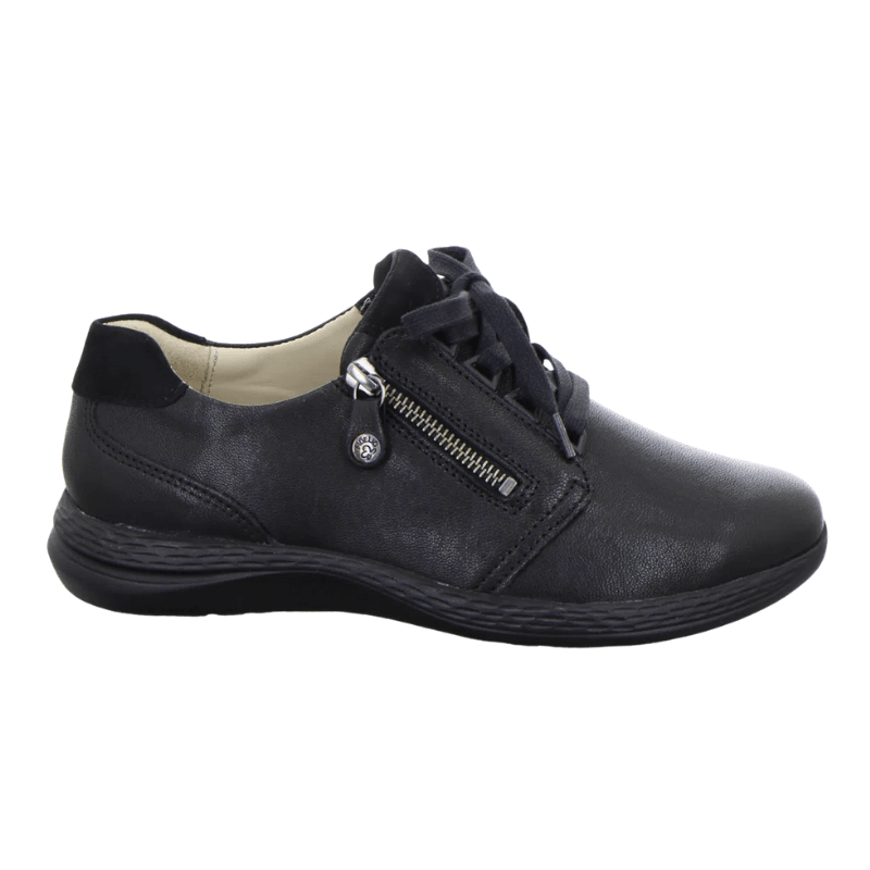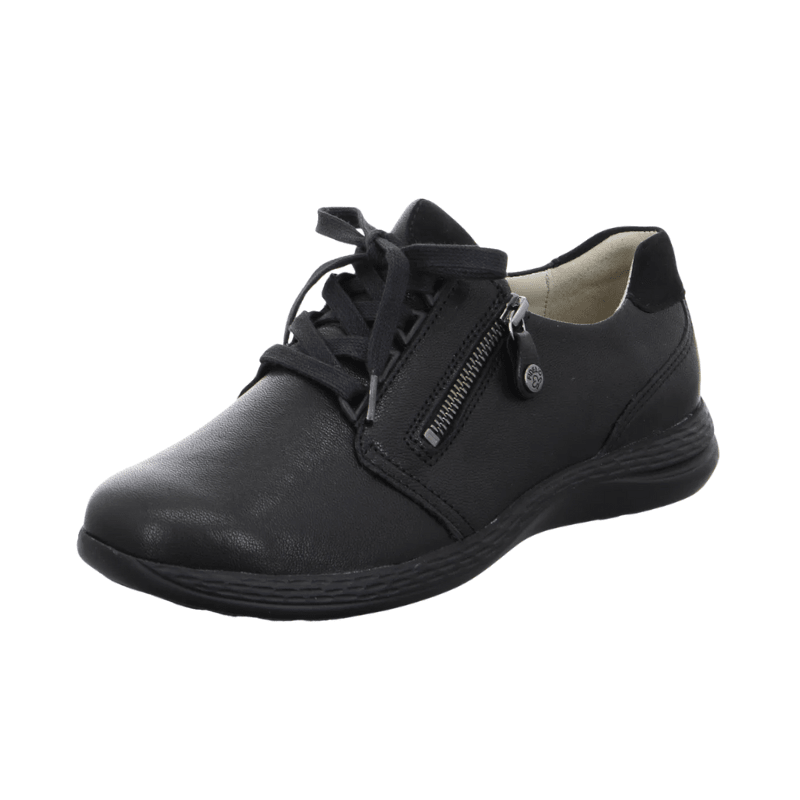 Mustat Fidelio-sneakerit, joissa on nahkainen ja multi-stretch-päällinen, tarjoavat optimaalista mukavuutta, kestävyyttä ja joustavuutta. Kengässä on nauhat ja vetoketju sivussa, ja se soveltuu erinomaisesti jokapäiväiseen käyttöön.