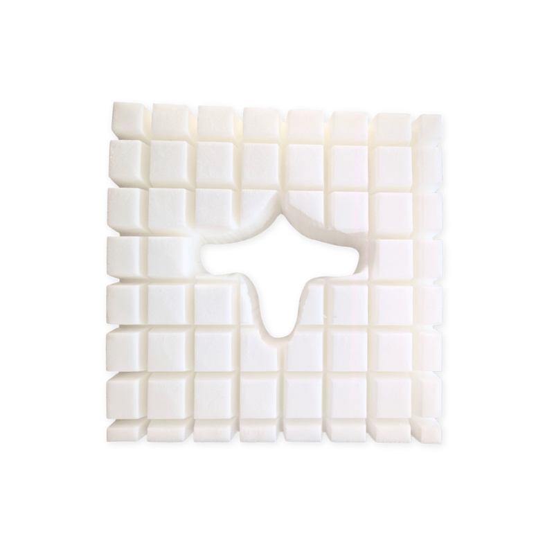 Tyynyn vaahto on jaettu pieniin neliöihin, jotka takaavat tasaisen painonjakauman ja tukevat vartaloa koko käytön ajan.