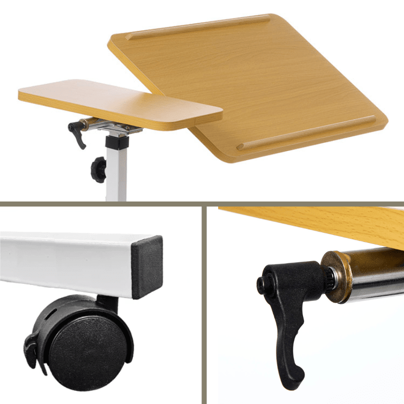 Pöydän korkeutta voidaan säätää, ja sitä voi käyttää sängyn molemmilta puolilta, mikä tarjoaa maksimaalisen joustavuuden. Se sopii yhtä hyvin käytettäväksi tuolin tai pyörätuolin vieressä kuin sängyn vieressä.